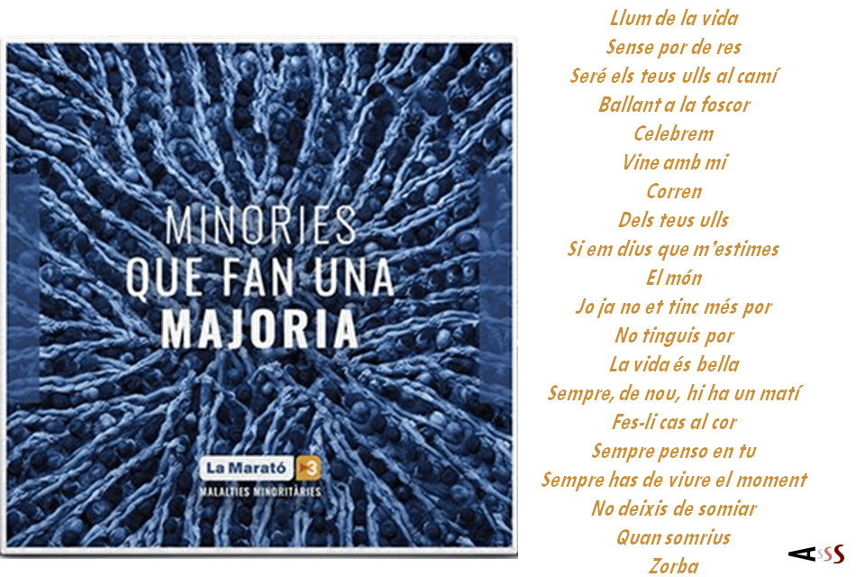 Cada desembre se celebra La Marató de TV3, una proposta solidària que busca recaptar diners amb la finalitat de seguir investigant mèdicament. Cada edició presenta una temàtica diferent sobre salut. Enguany, la temàtica són les malalties minoritàries. En aquest àlbum solidari col·laboren personalitats com l’Álex Ubago, l’Alan Parson, el Miquel Fernández, Miki Núñez, La Pegatina, Amaral, Vanesa Martín, La Folie i Jordi Ninus, Lola Índigo, Les Montses, Víctor Manuel, 31 FAM, Manuel Carrasco, Doctor Prats, Buhos, Els Catarres i Elena Gadel. El CD només el podrà comprar als quioscos o a la web de La botiga de TV3 fins a acabar les 200.000 unitats de la tirada.